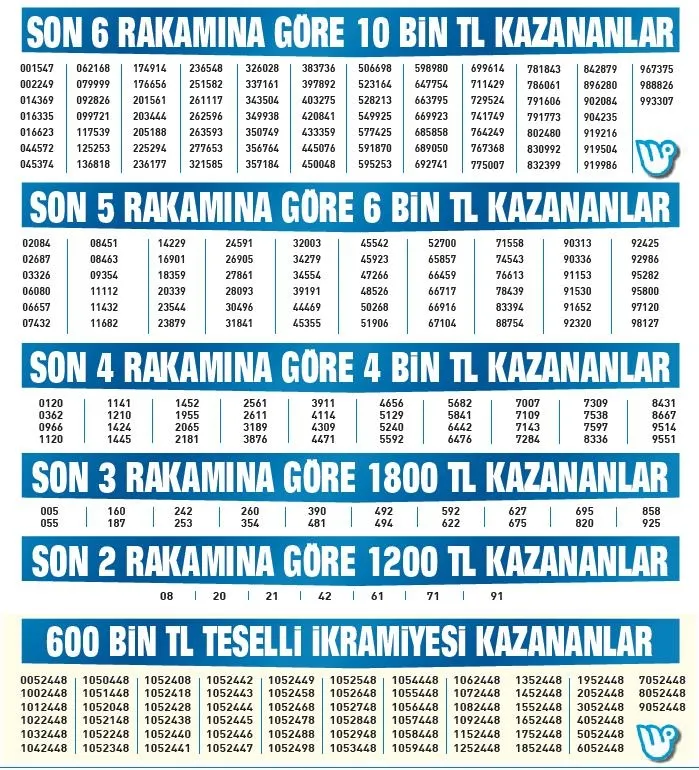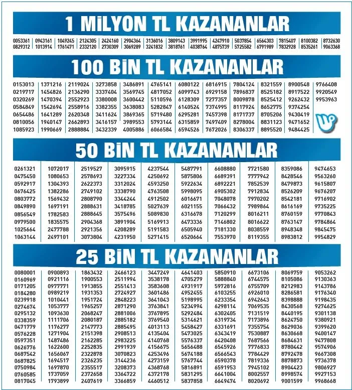 Milli Piyango yılbaşı özel çekilişi sıralı tam liste...