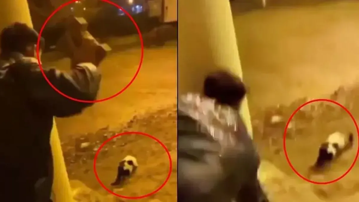 Batman'da kan donduran görüntü! Kediyi parke taşıyla yaraladı