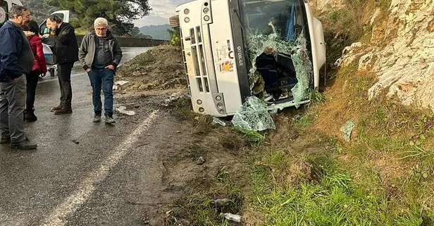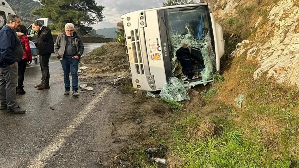 Edinilen bilgiye göre, Aydın'ın Didim ilçesinden İzmir'in Karaburun ilçesindeki Nergis Festivali'ne giden yolcuları taşıyan N.Ç. idaresindeki 48 ALZ 167 plakalı tur minibüsü Ortaklar-Çamlık yolu üzerinde yağış nedeniyle kayganlaşan yolda sürücüsünün direksiyon hakimiyetini kaybetmesi sonucu yol kenarındaki şarampole devrildi.