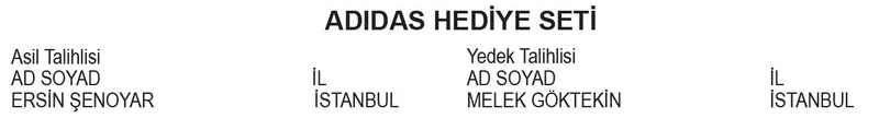 Adidas Hediye Seti kazanan ASİL ve YEDEK talihliler...