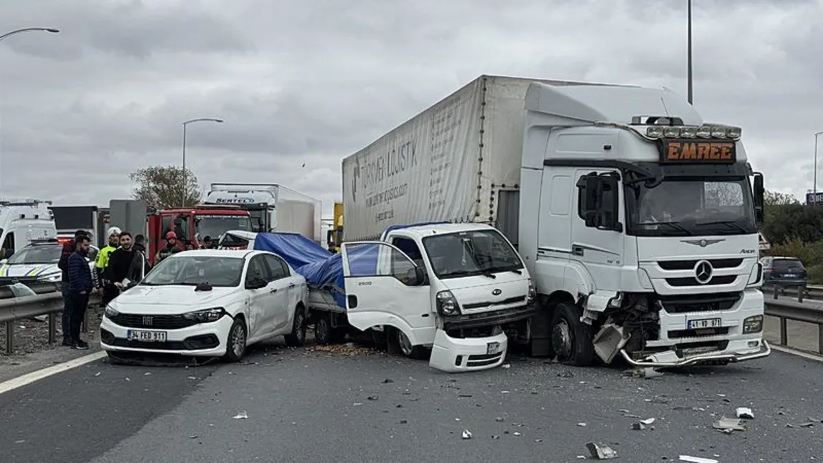 Otoyolun Ankara istikameti Gebze ilçesi Muallimköy mevkisi Osmangazi Köprüsü yol ayrımında tır, otomobil ve 2 kamyonetin karıştığı zincirleme trafik kazası meydana geldi.