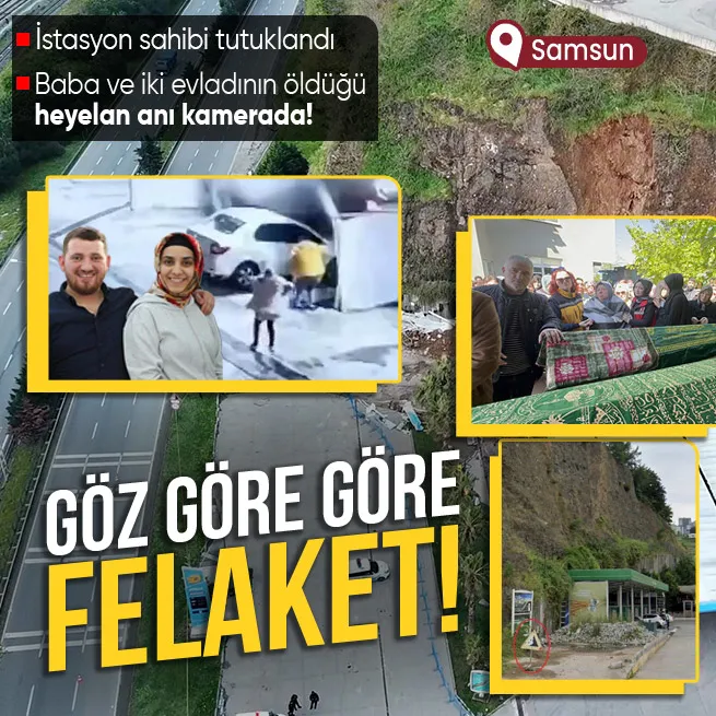 Samsun’da heyelan sonrası dağdan kopan kaya parçaları akaryakıt istasyonunun oto yıkama kısmına düştü. Burada aracını yıkayan 4 kişilik Kaya ailesi, göçük altında kaldı. Anne yaralı olarak çıkarılırken, baba ve 2 çocuğu olay yerinde hayatını kaybetti. Müdür ve iş yeri sahibi, gözaltına alındı.