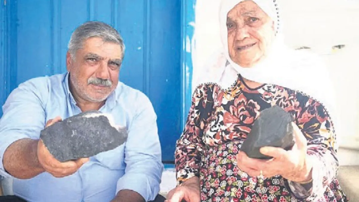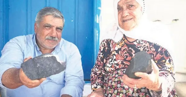 Evinin penceresinden yağmurun yağışını izleyen Fehime Ekici (85), bahçeye bir alev topu çakıldığını farketti. Durumu akşam eve gelen oğlu Fahri Ekici'ye anlattı. En büyük parçası yaklaşık 3,5 kilogram.