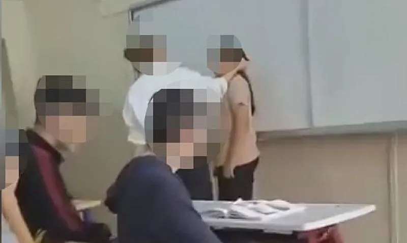 İstanbul Pendik'teki ortaokulda öğretmen, tahtaya kaldırdığı kız öğrenciye sınıfın ortasında fiziksel ve sözlü şiddet uyguladı. O anlar kameraya yansırken, öğretmen hakkında soruşturma başlatıldığı öğrenildi.
