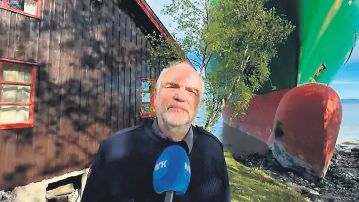 Norveç'in Trondheim kenti yakınlarındaki Byneset bölgesinde yaşayan Johan Helberg, Perşembe sabahı saat 05.00 sularında gözlerini açtığında karşısında dev bir konteyner gemisi buldu.