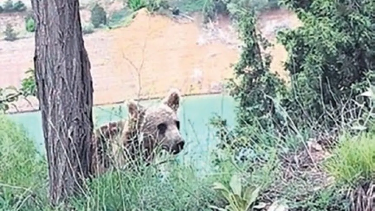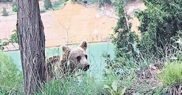 Yiyecek aramak için Pusat-Özen Barajı kıyısına kadar gelen ve beslendiği gözlenen ayı, arkadaş grubundan birinin telefonuyla görüntülendi.