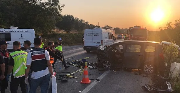 Korkunç kaza, İzmir Menderes'te yaşandı. Özkan Nazlı'nın kullandığı otomobille karşı yönden gelen Sultan Baran'ın (22) kullandığı araçla çarpıştı. Savrulan Nazlı'nın otomobili, bu kez S. U.'nun (21) kullandığı otomobille çarpıştı.