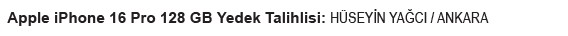 Apple iPhone 16 Pro 128 GB yedek talihli