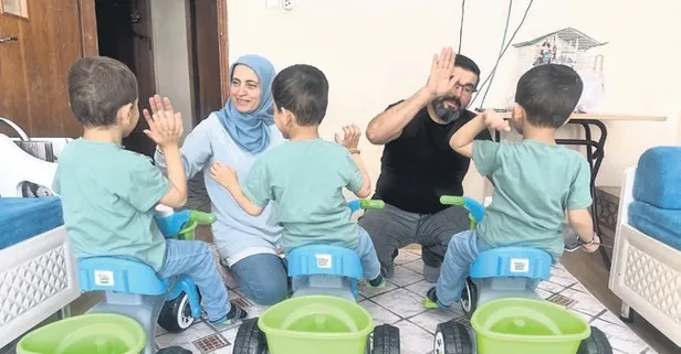 Koruyucu aile olan İpek çifti üçüzlerle mutluluklarını katladı