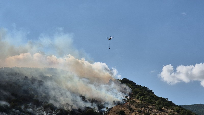 Söndürme çalışmalarına 2 helikopter ve 2 söndürme uçağı da havadan destek veriyor.