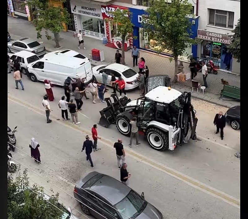 Bu sırada sokağa gelen İ.K.'nin kontrolünü yitirdiği iş makinesi, park halindeki 5 araç ile 2 yayaya çarptı. Çevredekilerin ihbarı üzerine kaza yerine polis ve sağlık ekipleri sevk edildi. Yaralılar, sağlık ekiplerinin ilk müdahaleleri ardından kentteki hastanelere kaldırıldı.