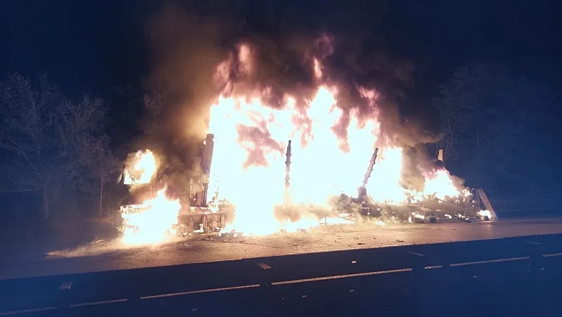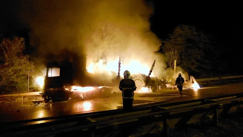 Alevleri fark eden sürücü aracı güvenli bir bölgeye çekmeye çalışırken, TIR yaklaşık 8 kilometre boyunca yanarak ilerledi. Araç, şarampoldeki bariyerlere çarparak durdu.