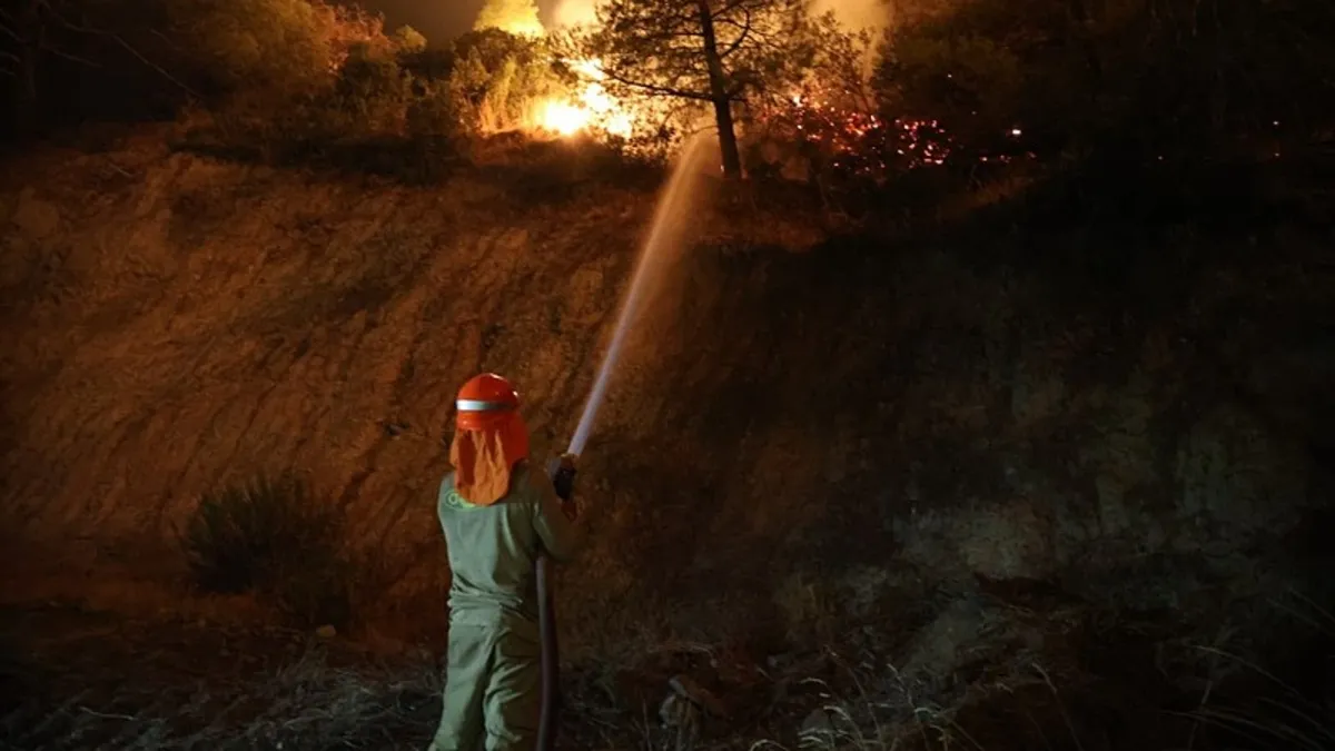 Denizli'nin Buldan ilçesinde 5 gündür devam eden orman yangını, rüzgarın etkisiyle büyüyerek Bölmekaya Mahallesi'ne kadar ulaştı. Alevlerin yerleşim yerlerini tehdit etmesi üzerine vatandaşlar ve hayvanlar tahliye edilirken, yoğun müdahaleler sonucu yangın mahalle çevresinde kontrol altına alındı. Evlerde büyük bir hasar yaşanmazken, ormanlık alanlar ve tarlalar alevlere teslim oldu.