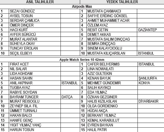 Airpods Max ve Apple Watch Series 10 42mm kazanan asil ve yedek talihliler...