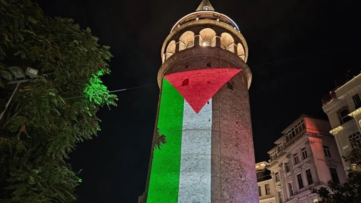 Galata Kulesi’ne Filistin Bayrağı yansıtıldı! Kültür ve Turizm Bakanlığı'ndan anlamlı destek