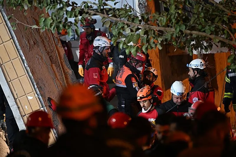 Gebze ilçesinde çöken 7 katlı binanın enkazında kalan aileyi kurtarma çalışmaları (AA)