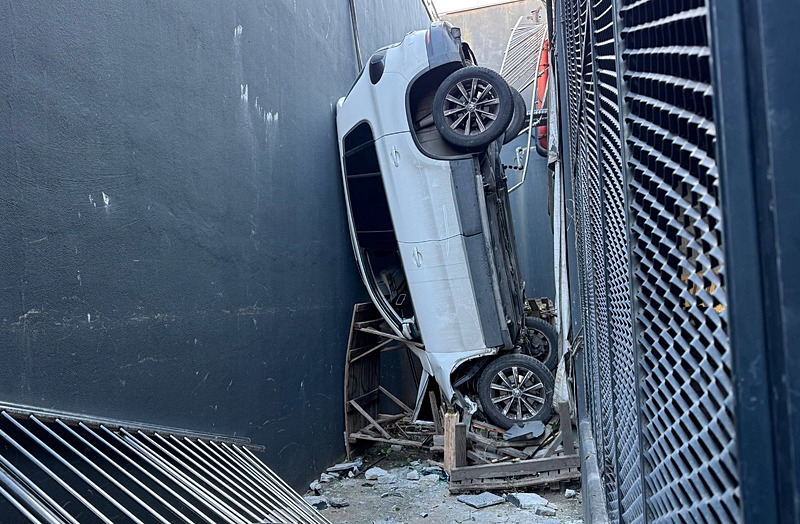İstanbul Bahçelievler'de otoparktan çıkan kadın sürücü direksiyon hakimiyetini kaybederek çok sayıda araca çarptı. Demir korkulukları aşan otomobil boşluğa düştü. Sıkışan sürücü itfaiye yardımıyla kurtulurken, yapılan çalışmalar havadan görüntülendi.