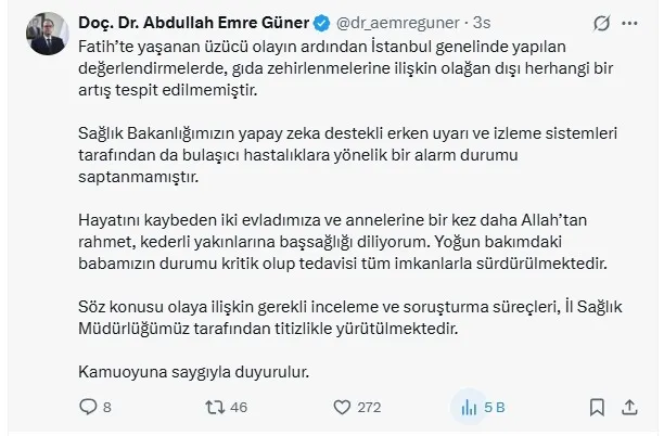 İstanbul Ortaköy'de yedikleri yemekten zehirlendiği öne sürülen ailenin çocukları Kadir Muhammet (6) ve Masal B. (3) dün anne Çiğdem B. de bugün hayatını kaybetti, baba ise entübe edildi. Konuyla ilgili ailenin hastanedeki görüntüleri ortaya çıkarken 4 kişi gözaltına alındı. Ailenin yemek yediği restoran mühürlendi. Uzmanlar zehirlenmenin 2 ihtimalden kaynaklanabileceğini değerlendiriyor. Olaya ilişkin açıklama yapan Adalet Bakanı Yılmaz Tunç soruşturmanın titizlikle sürdüğünü belirtti. Ailenin ne yediği dakika dakika ortaya çıkarken Takvim.com.tr Adli Tıp Kurumu'ndaki cenazelerin ön otopsi raporuna ulaştı.