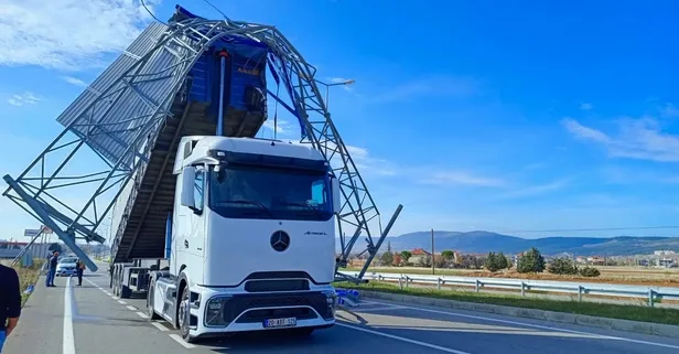 Denizli'de açık unutulan tırın dorsesi trafik levhasına çarptı