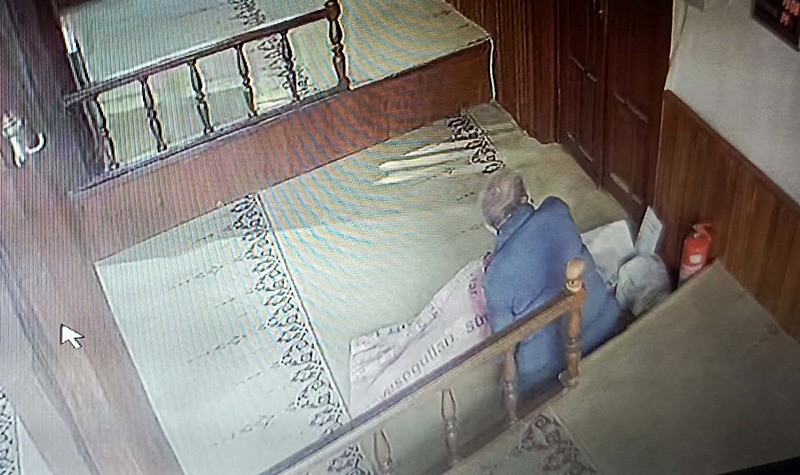 Cami görevlisi Mikail Aydın, ikindi namazı için geldiğinde sadaka kutusunun yerinde olmadığını fark edince kamera kayıtlarını inceledi. Kamera kayıtlarında şüphelinin camiye girdiğini, kimsenin olmadığını görünce de çıkıp tekrar elinde çuvalla geri dönüp sadaka kutusunu aldığı anlar yer aldı.