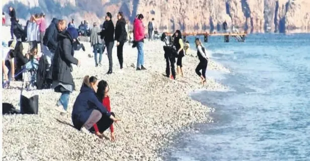 Türkiye kar altında kalırken Antalya'da vatandaşlar sahillere akın etti...