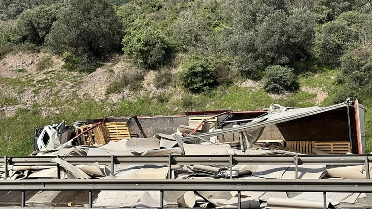 - Kazada mukavva yüklü tır devrildi ve yükleri yola saçıldı.