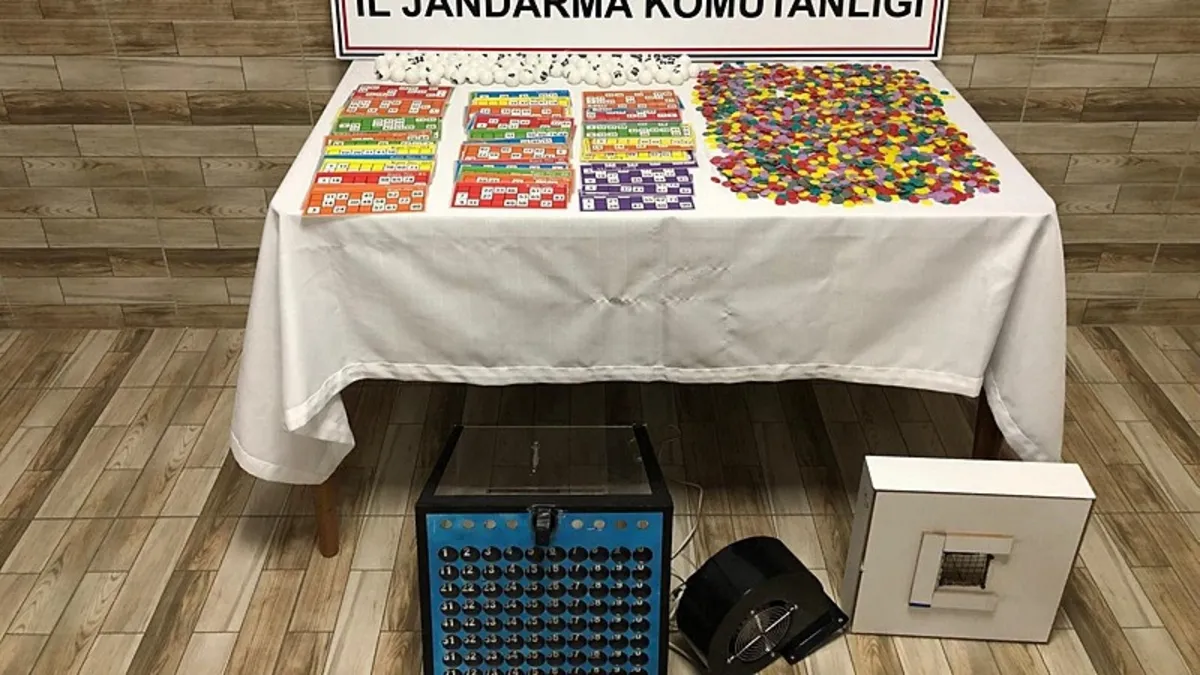 - Baskında renkli kumar pulları, 104 tombala kağıdı, 90 tombala topu ve tombala oynatma masası ele geçirildi.