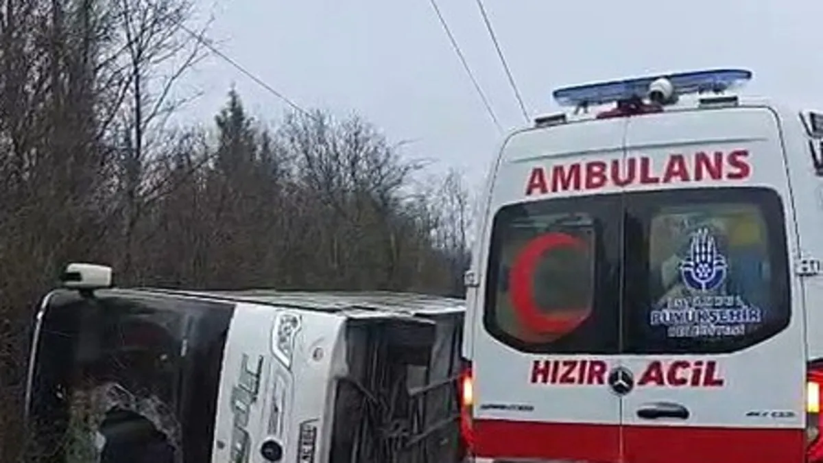 - İstanbul Çatalca'da İl Göç İdaresi Müdürlüğü'ne ait servis otobüsü sağanak yağış nedeniyle kayganlaşan yolda devrildi.