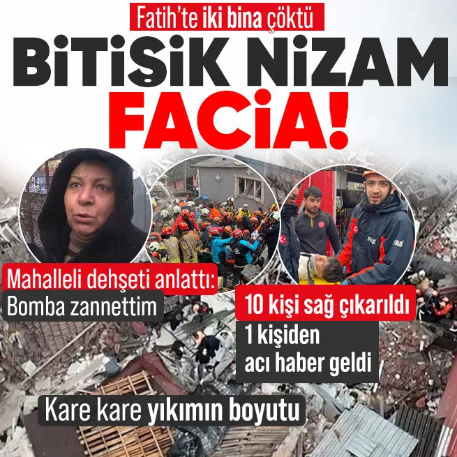 - Fatih Ayvansaray Mahallesi'nde dün meydana gelen doğal gaz patlaması sonucu iki bitişik bina çöktü.