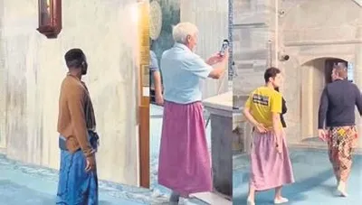 Bursa'daki Yeşil Cami'yi ziyaret eden erkek turistler, cami girişindeki etekleri giydiler, gender-bender bir moda ortaya çıktı.