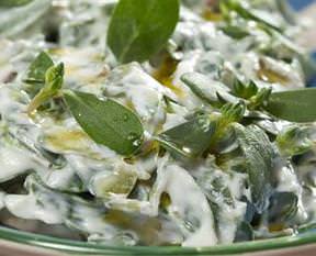3. Ayrı bir kâsede yoğurt, limon suyu, zeytinyağı ve tuzu karıştırıp çırpın ve semizotlarının üzerine ilave edip karıştırın. Arzuya göre üzerine pul biber serpip servis edin.